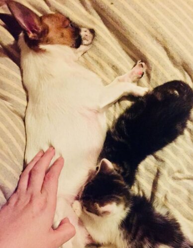 Na szczęście wszystko okazało się w bardzo pozytywny sposób! Chihuahua się stała prawdziwą matką dla małych kotków. Opiekowała się nimi, zawsze znajdowała przy nich, a jednego razu właścicielka zauważyła jedną ciekawą rzecz! Piesek Meggie karmiła kocięta własnym mlekiem, chociaż sama nie miała szczeniaczków. Patrząc na to, zaczynasz rozumieć, że nasze bracie mniejsze potrafią robić niesamowite rzeczy!