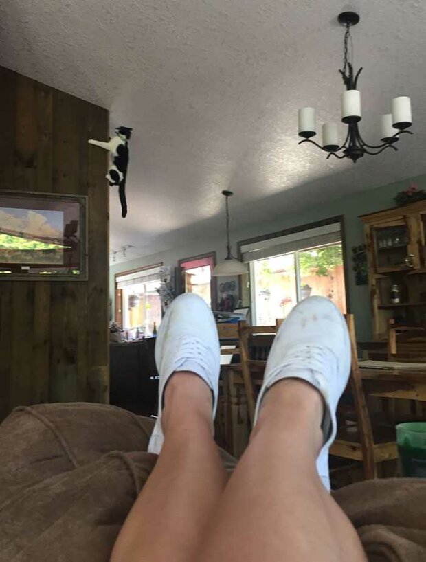 Właściciele kotów pewnie nie raz trafili swojego sierściucha w dziwnej sytuacji. Koty nie tylko potrafią przybierać każdy kształt różnorodnych pojemników czy kartonów, ale często też łamią oni prawa grawitacji.