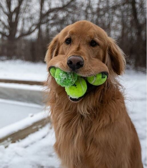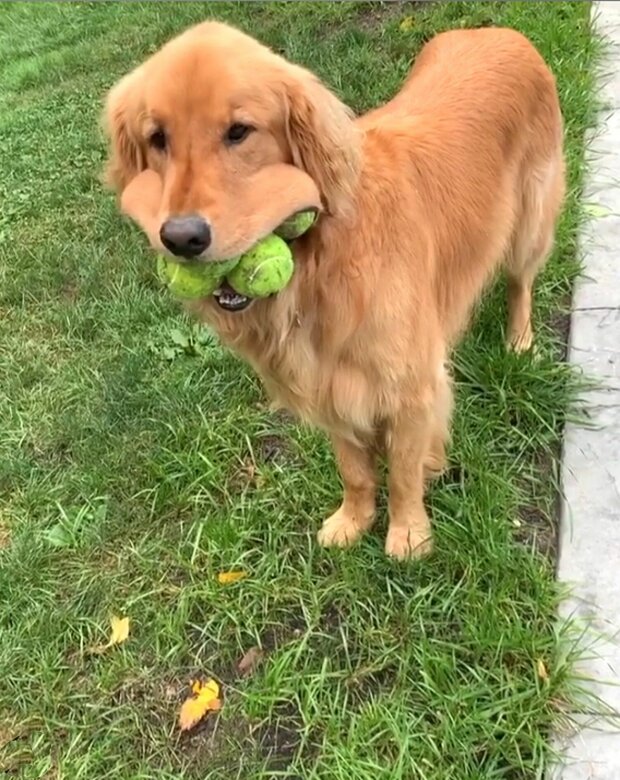 Poza tym, z te pieski bardzo piękne, cudowne i mile, tak samo potrafią robić niesamowite rzeczy. Tak, na przykład jeden z takich piesków jest Finley. Czworonoga, który ma jedynie 2 lata, potrafi wziąć do paszczy aż 4 piłeczek tenisowych.