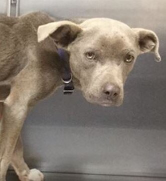 Na leśnej drodze z dala od zabudowań, został znaleziony pitbull. Suczka była w bardzo złym stanie, bała się ludzi, widać było, że ktoś ją skrzywdził. Była bardzo wychudzona i zmarznięta.