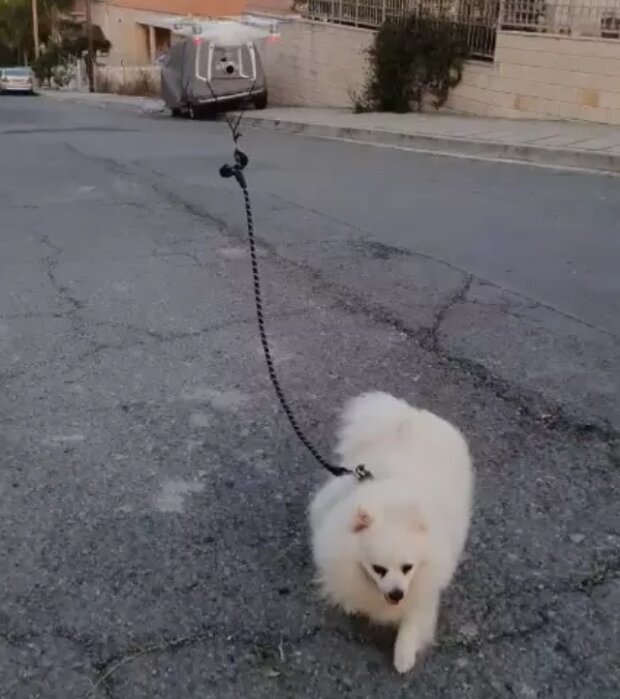 Vakis Demtriou zaprzągł do pracy drona. W ten sposób wyprowadził psa, nie musząc wychodzić z domu.