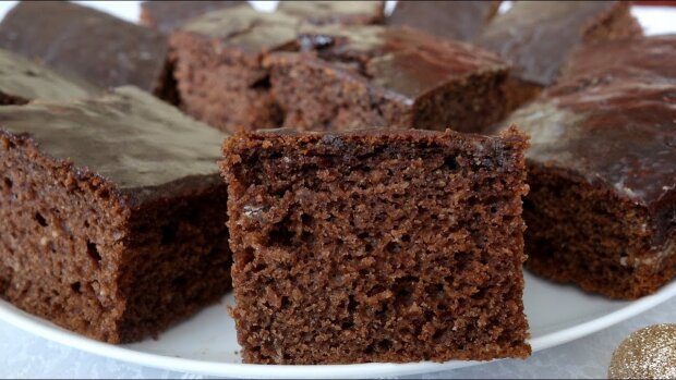 Wykonanie jest bardzo proste. Wszystko razem należy wymieszać i wlać do wysmarowanej masłem i wysypanej mąką lub wyłożonej papierem do pieczenia blachy. Piec w 180 stopniach ok. 1. godziny (ale warto sprawdzić po 45 minutach patyczkiem, czy ciasto jeszcze się do niego przyklei).
