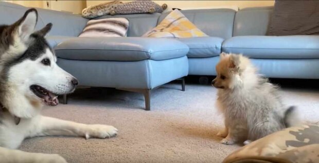 Ten husky do tej pory był jednym zwierzęciem w domu. Jego właściciele postanowili zaopiekować się małym szczeniaczkiem. Wiedzieli, że do tego czasu ich pupil nie miał styczności z małymi psami. Bali się więc jego reakcji.