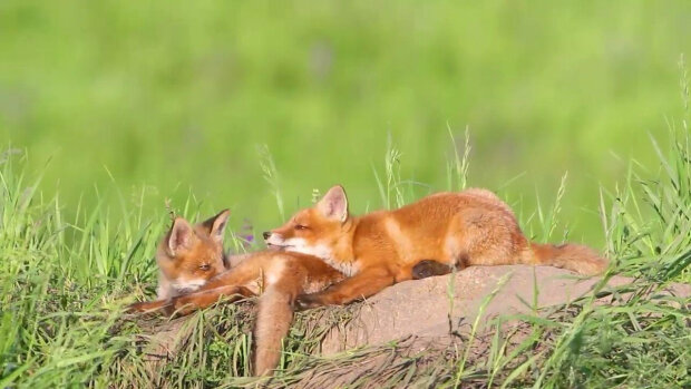 Lisy rodzą się w przytulnej dziurze, ślepy i głuchy. Samica lis pozostaje z niemowlętami praktycznie nieaktywnymi przez pierwsze dwa tygodnie życia, karmi samicę sam lis, ale przy tym nie może iść do swoich dzieci. Swoje gornictwo pozostawia obok dziury.