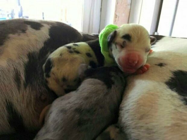 Właścicielka niezwykłego zwierzaka jest Caddy Williams. Ta kobieta jest właścicielka trzyletniej suczki rasy dog, która niedawno została matką i urodziła 8 szczeniąt.