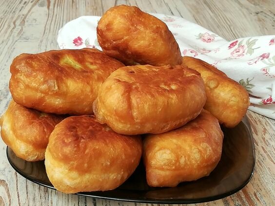 Ciasto: mąka (400 g), woda (250 ml), drożdże (25 g), cukier (1 l stołową), olej (1 l srołową), sól. Nadzienie może być jak chcesz. To może być kapusta, ziemniaki, jajka i nawet coś słodkiego jagody lub owoce.