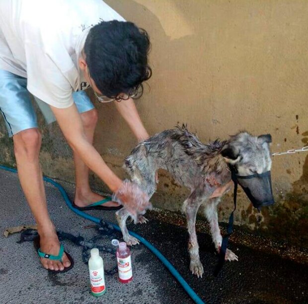 Stan zwierzaka był naprawdę zatrważający. Nie miał on sierści, był wychudzony i zarobaczony. Rico w mgnieniu oka zaniósł go do weterynarza.