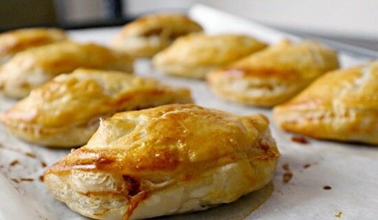 Drobno trzy sery, posiekaj drobno zieleninę i wymieszaj. Wyciągamy ciasto z zamrażarki i kroimy w trójkąty. Umieść nadzienie na wszystkich trójkątach i przekręć je w bajgiel. Nasmaruj je żółtkiem. Umieść w piekarniku na pół godziny. Piec w temperaturze 180 °.