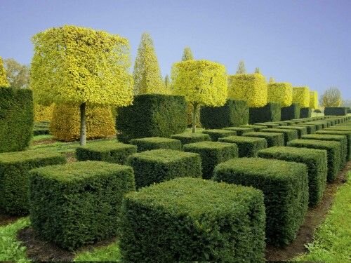 Ożywiają surowe i regularne linie, które dominują we włoskich ogrodach i sprawiają, że strona ta jest inna niż inne. Cis i bukszpan, a także ligustr, berberys pospolity, spirea, irga są łatwe do krojenia.