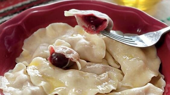 Ciasto cienko rozwałkuj (o grubości około 3 mm) i ściśnij je za pomocą szklanki ślepej próby. W każdym okręgu kładziemy pół łyżeczki. cukier i kilka wiśni. Ściskamy krawędzie. Zanurz pierogi we wrzącej osolonej wodzie. Gdy przedmioty się pojawią, gotuj je przez 3-5 minut.