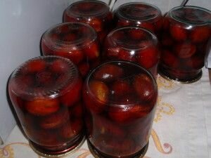 Ostudzić marynatę i połączyć z octem. Gotową marynatę wlać śliwki do pojemników. Wkładamy słoiki do garnka do sterylizacji (kładziemy kawałek materiału na dnie, aby słoiki nie pękły). Wlej zimną wodę do garnka i umieść na ogniu. Po ugotowaniu utrzymuj na średnim ogniu przez 4-6 minut. Zamykamy słoiki pokrywkami i zawijamy je w coś ciepłego, aby powoli stygły.