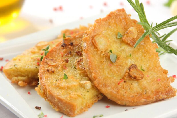 - Maczaj pokrojony chleb w jajku z obu stroni umieść na rozgrzanej patelni,