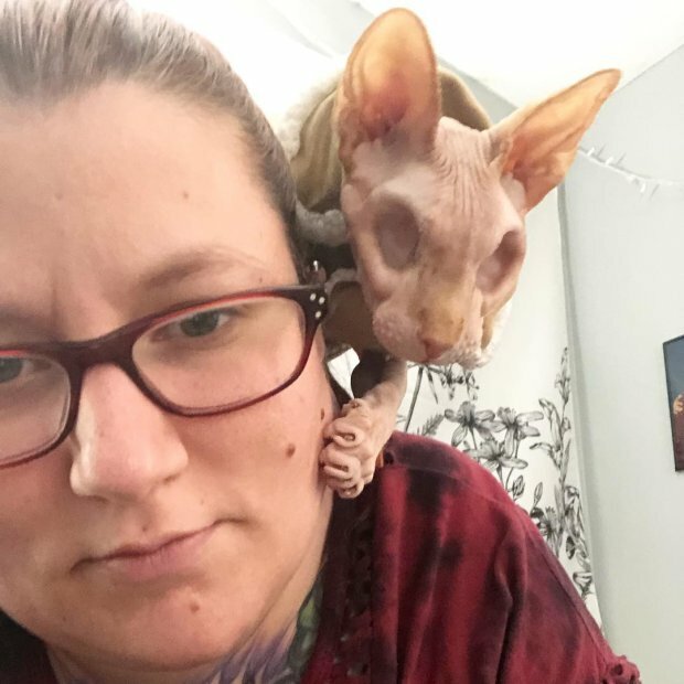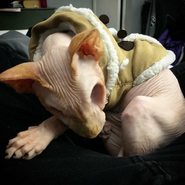 Ten bezoki kociak rasy sfinks ma na imię Jazzy i ma jedenaście lat. On całkowicie utracił zdolność widzenia w wyniku poważnych chorób: owrzodzenia rogówki i opryszczki. Mimo ciężkiego życia teraz kociak czuje się dobrze: właściciele mówią, że Jazzy nauczył się żyć pełnią życia, nawet mimo swojej ślepoty.
