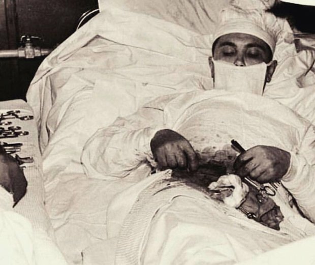 „Moi biedni asystenci! W ostatniej chwili spojrzałem na nich: byli w białych fartuchach i sami byli tak samo biali. Ja też się bałem. Jednak potem wziąłem nowokainę i zrobiłem sobie pierwszy zastrzyk. Jakoś automatycznie przełączyłem się na tryb pracy i od tego momentu nie zwracałem uwagi na nic, oprócz operacji ”.