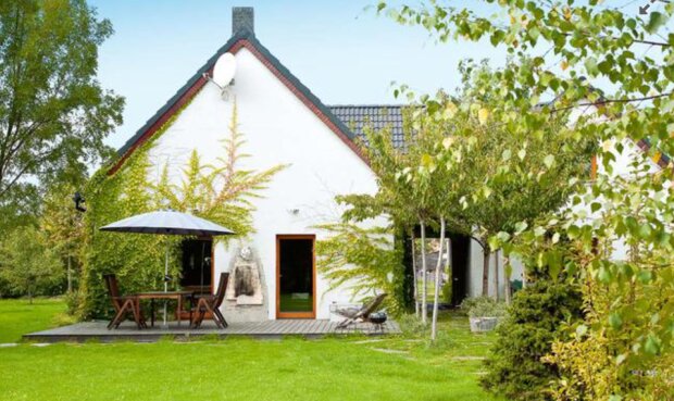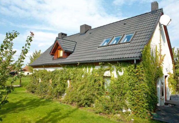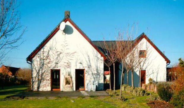 Właściciele domu chcieli zostawić ceglane ściany, które ostatnio są w modzie. Było to jednak bardzo trudne ze względu na konieczność ocieplenia budynku. Otynkowano go, ale dzięki zasadzeniu winobluszcza, obłapiającego romantycznie dom - budynek zachował swój wiejski klimat.