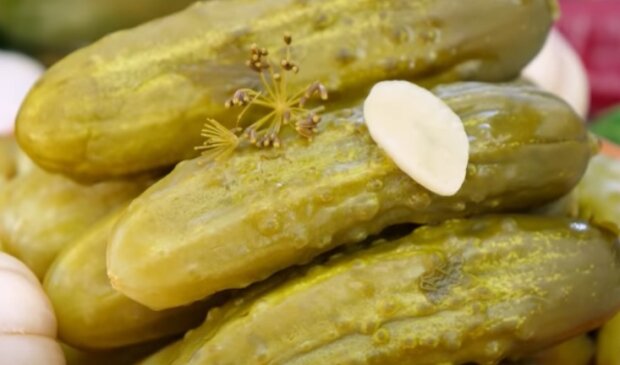 Aby zrobić chrupiące ogórki kiszone, potrzebujemy ogórków, soli, zimnej wody, czosnku, suszonych parasoli koperkowych. Umyj ogórki. Złóż rondel (możesz do tego użyć trzylitrowych słoików). Warstwę z koperkiem i obranymi ząbkami czosnku. Tak napełnij naczynia do końca.