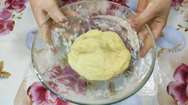 Wbij jajko do głębokiej miski, dodaj cukier i zamieszaj. Następnie wlej masło i kefir. Wymieszaj ponownie, aby uzyskać jednorodną masę. Teraz dodaj suche składniki - mąkę i proszek do pieczenia. Wymieszaj i ugniataj ciasto.