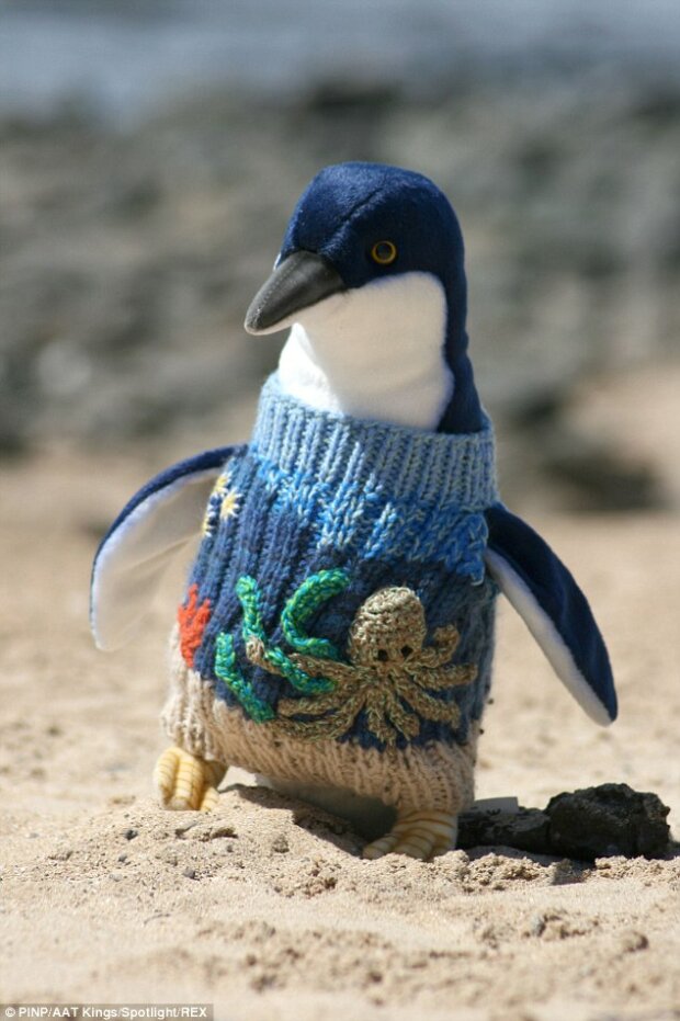 Najstarszy mężczyzna w Australii, który w 2015 roku skończył 110 lat, szyje ubrania dla pingwinów, aby zapewnić im ciepło i chronić je przed zatruciem.