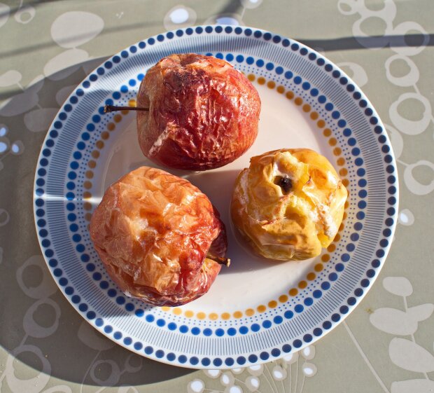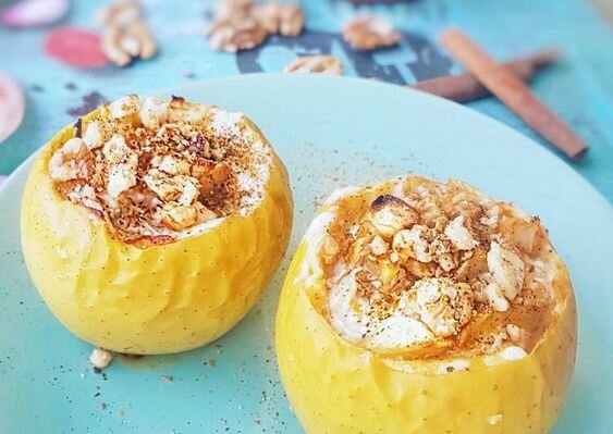 - Pokruszone orzechy laskowe posyp powierzchnię jabłek i przykryj.