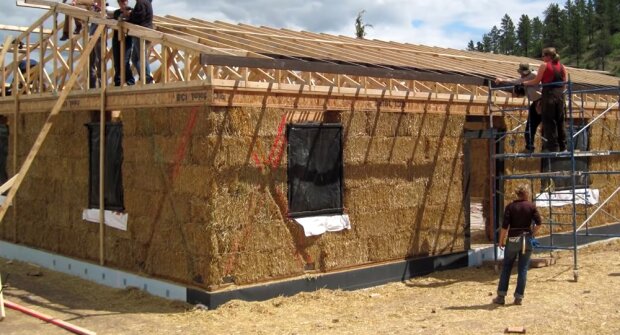 Ta młoda rodzina naprawdę chciała mieć własny dom, ale nie miała pieniędzy ani zezy kupić go, ani zbudować. Natomiast małżonkowie nie poddawali się i zdecydowali się na dość ryzykowny eksperyment. Najpierw zbudowali drewnianą ramę domu, a następnie osłonili ja dużymi blokami ze słomy.