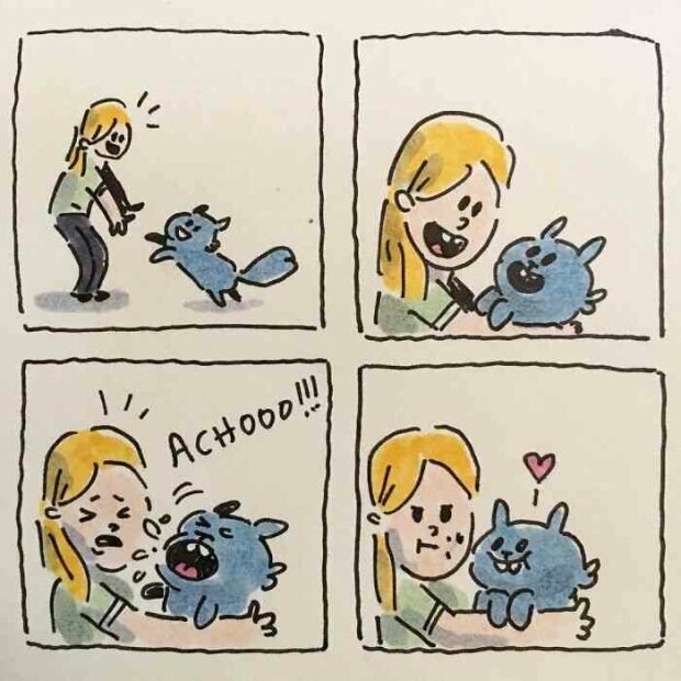 Wszystkie właściciele tych puszystych, mruczących, często narcystycznych oraz sceptycznych wobec ludzi zwierząt, wiedzą, że kot to uroczy anioł i prawdziwy demon w jednym ciele. Dokładnie to ilustrują poniższe zabawne komiksy, stworzone przez Rikke Asbjorna.