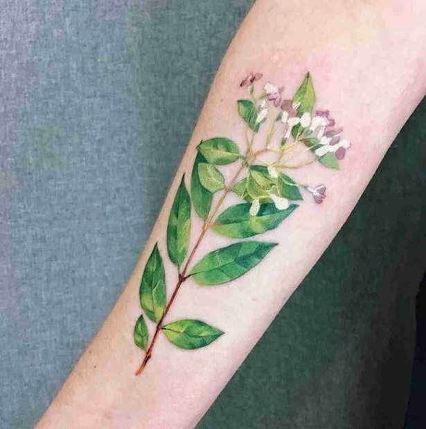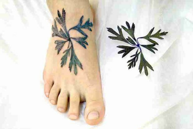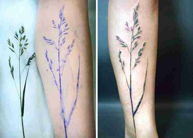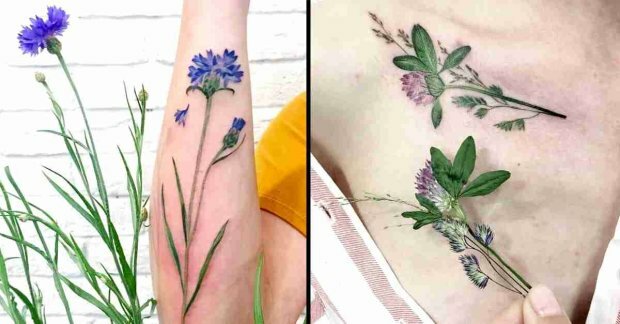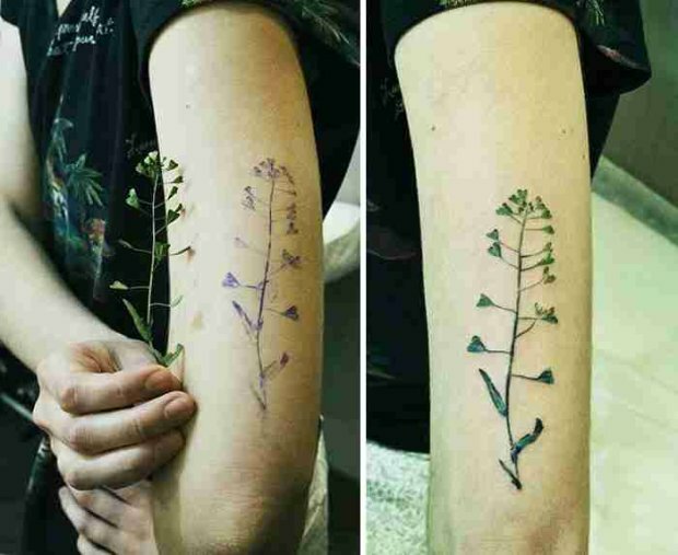Co ciekawe, dziewczyna bardzo rzadko samodzielnie rysuje szkice. Zamiast tego ona stosuje bardzo nietypową technikę: dziewczyna używa prawdziwych roślin jako pieczątki i robi tatuaż, zachowując realistyczny wzór oraz kształt każdej rośliny.