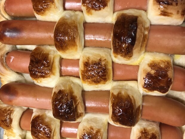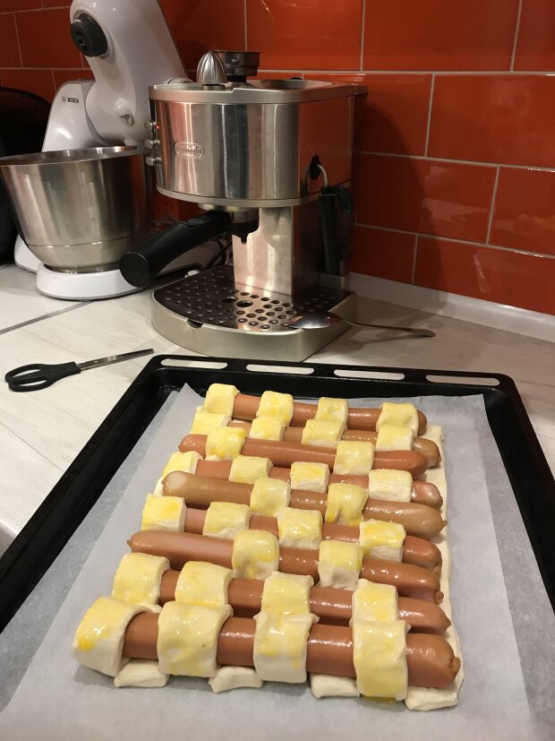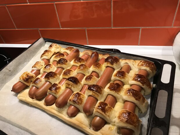 Przepis: rozmrozić ciasto francuskie. Kiedy ono będzie miękkie, kroimy go w paski, układamy kiełbaski i zwijamy w tubę. Smarujemy żółtkiem. Układamy w piekarnik na 15 minut! Smacznego!