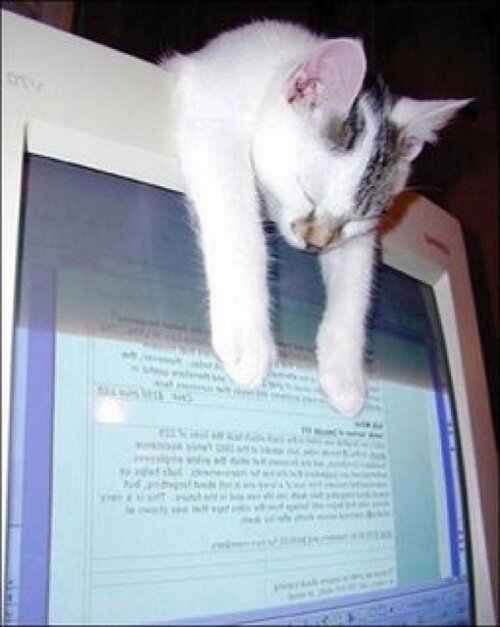 Zasnąć na monitorze? Dla tego Mruczka to żaden wyczyn...