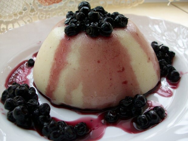 - Przekładamy do przelanych zimną wodą salaterek i polewamy sokiem malinowym lub dodajemy ulubione owoce.