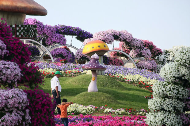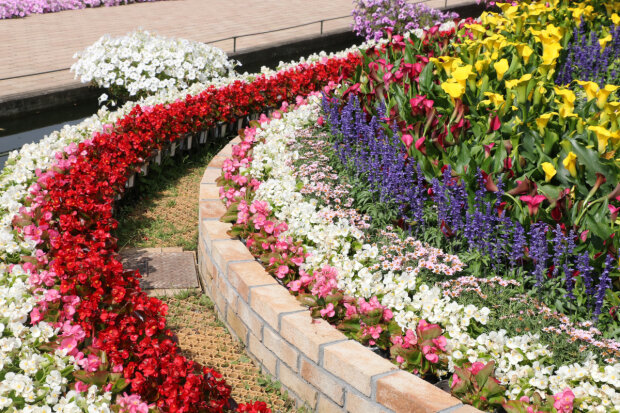 Przepiękne klomby kwiatowe.