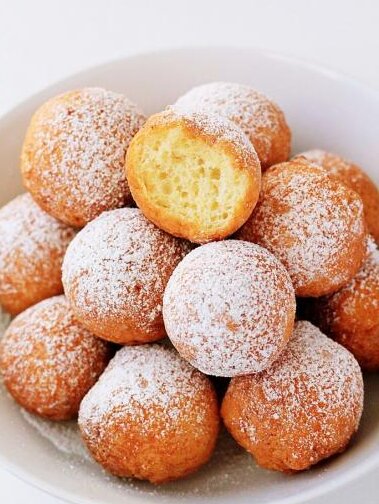 - Na koniec oprószyć cukrem pudrem lub nadziać dowolnym nadzieniem. Smacznego!