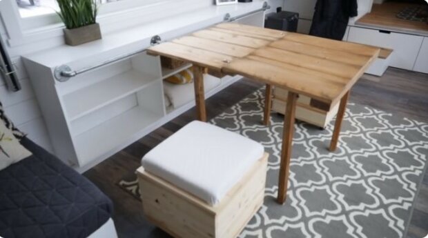 Kobieta stara się stworzyć wygodne meble, które nie zaśmiecają mieszkania, ale spełniają kilka funkcji. Prawie wszystkie jej dzieła są przekształcane dla wygody właścicieli.