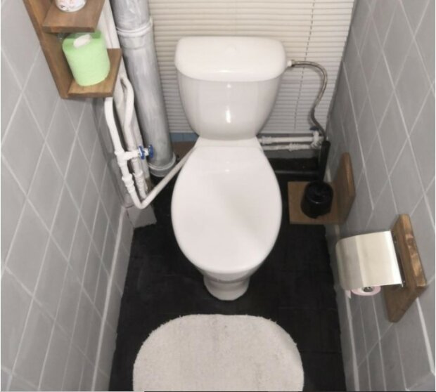W toalecie była stara, znana wszystkim płytka. Pomimo tego, że sama łazienka była dość czysta, stan podłogi nie był zbyt przyjemny. Właściciel pokoju wykazał się maksymalną kreatywnością i pomysłowością.