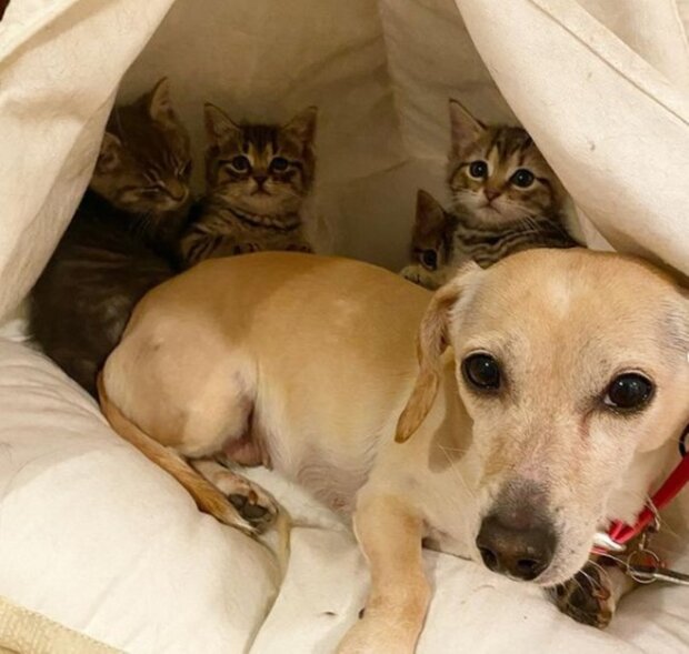 Miłośnicy kotów i psów rzadko dochodzą do porozumienia, ale tak właśnie jest. Zdjęcia i filmy przedstawiające psa opiekującego się dwoma kociętami zaczęły zdobywać popularność na Instagramie.