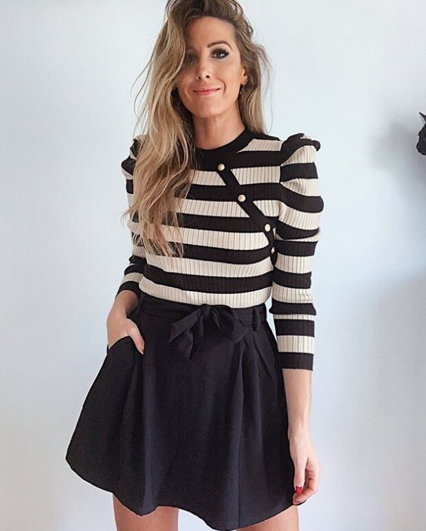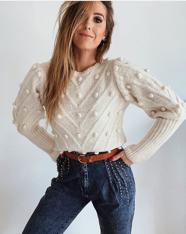 Sweter z bufiastymi rękawami świetnie sprawdzi się, jeśli będziesz chciała wyglądać nieco bardziej elegancko. Zestawiony ze spódnicą wygląda zjawiskowo. To niepowtarzlny styl retro.