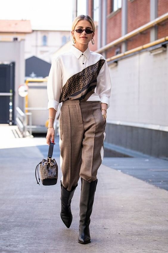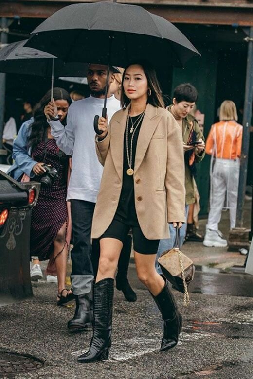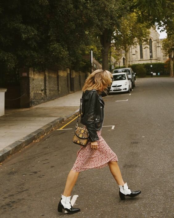 To bardzo nieoczywiste zestawienie, ale my wierzymy w potencjał kowbojek. W końcu mamy do wyboru bardzo wiele modeli. Do eleganckich stylizacji wybierz te w jednym odcieniu, wąskie i z połyskiem. Dobierz do nich cygaretki czy garniturowe spodnie. Na górę wybierz koszulę lub golf. Możesz także do tego typu kowbojek założyć oversize’ową marynarkę i przewiązać ją paskiem. Efekt będzie zniewalający!