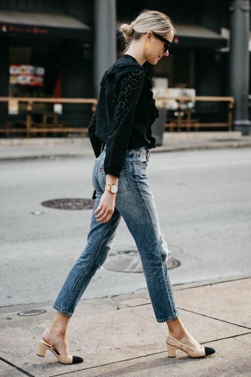 W większości sieciówek długość spodni zdecydowanie skierowana jest do bardzo wysokich dziewczyn. Powinnyśmy jednak unikać podwijania, a wybierać obcinanie i to właśnie przed kostkę. Możemy zrobić to same, w końcu postrzępione nogawki są na czasie!