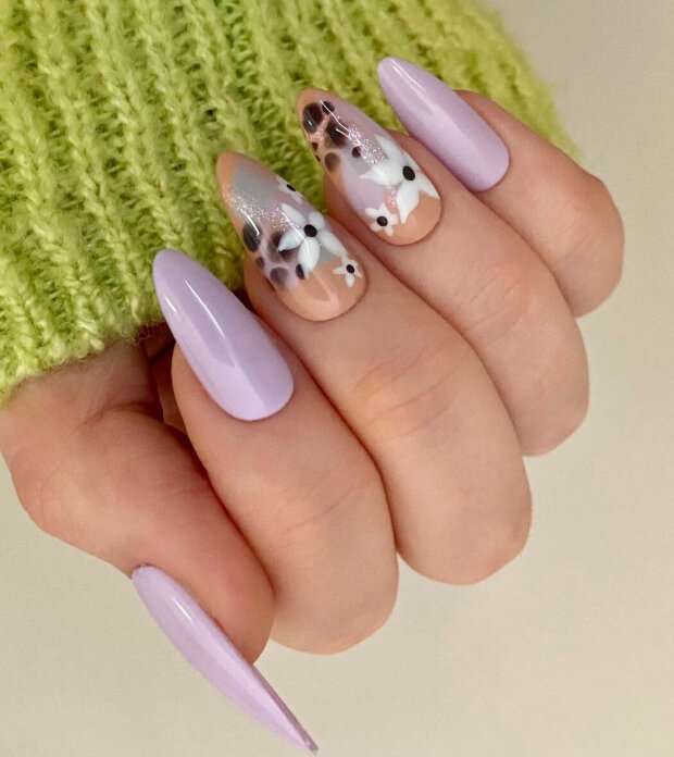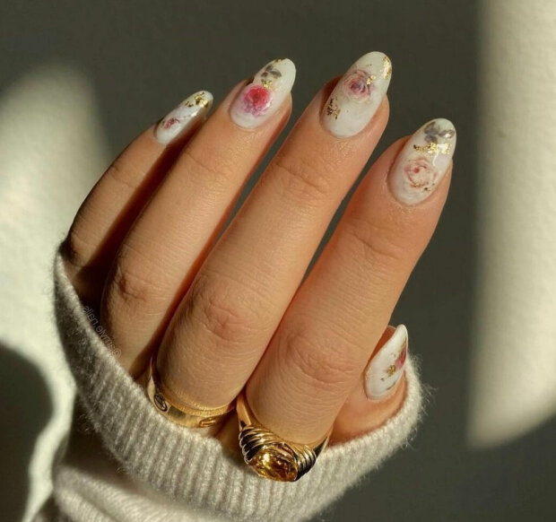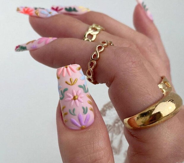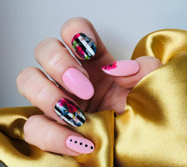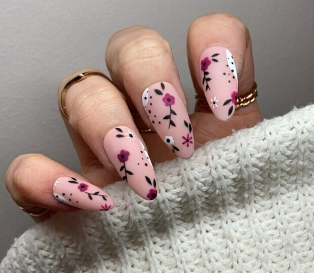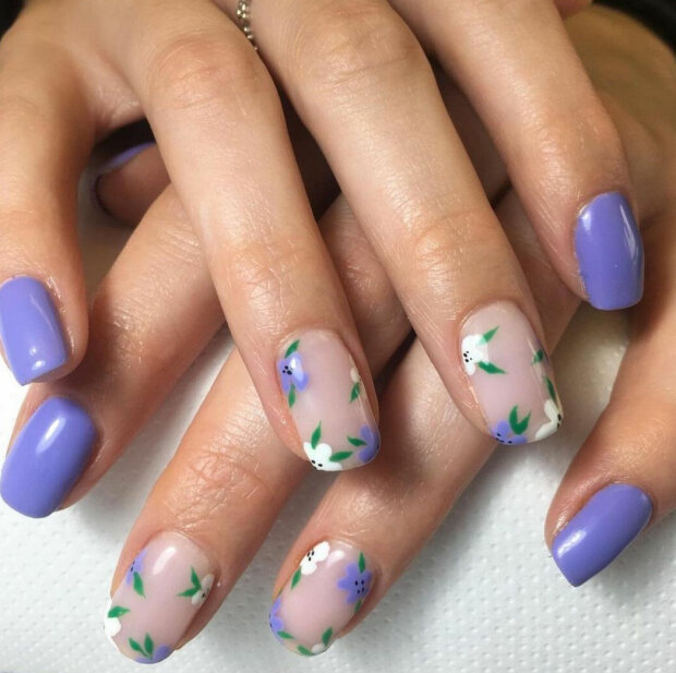 Niezaprzeczalną zaletą manicure kwiatowego jest to, że on wygląda dobrze zarówno na długich, jak i krótkich paznokciach.