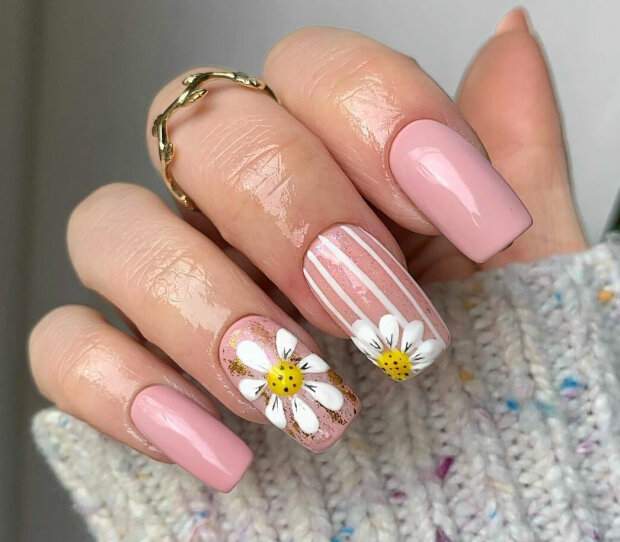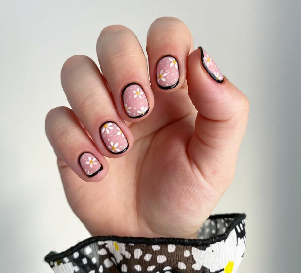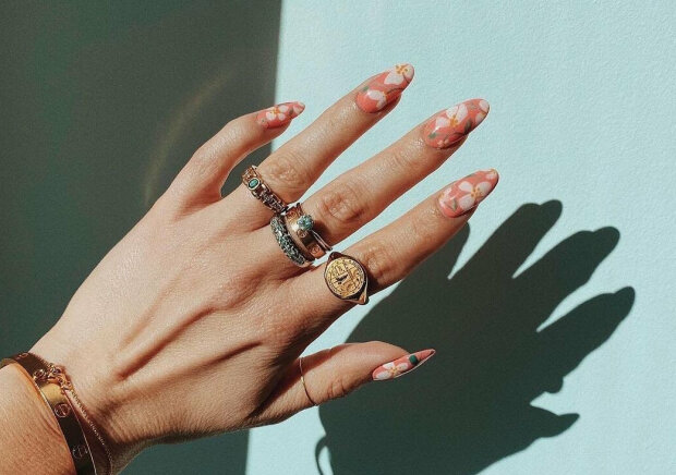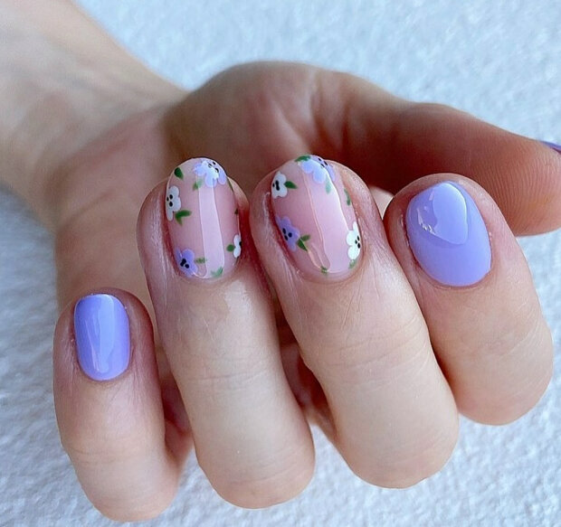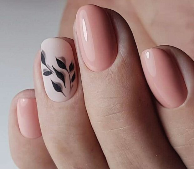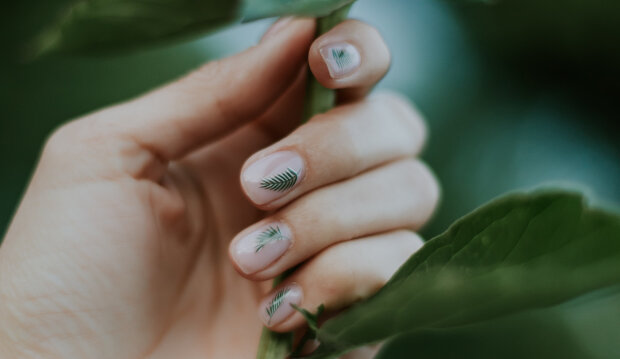 Minimalistyczny manicure również jest aktualny i, co ważniejsze, bardzo łatwy do wykonania – wystarczy wybrać ulubiony kolor i jego jaśniejszy odcień oraz narysować cienką gałązkę, liść lub kilka kwiatów na kilku paznokciach.