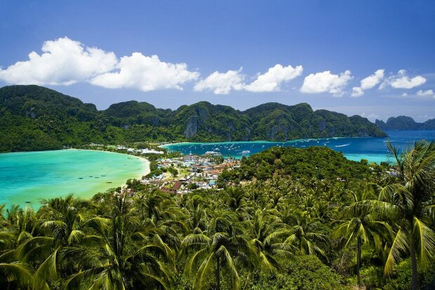 Ko Phi Phi z najwyższego punktu wyspy, Tajlandia