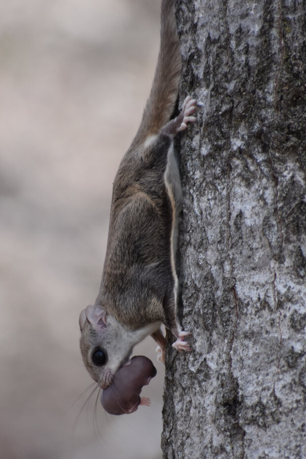 Jak powiedziała Amber, postanowiła usunąć stare drzewo na swoim podwórku. A kiedy praca się rozpoczęła, na jednym z pobliskich drzew pojawiła się latająca wiewiórka, ale nie sama. W zębach trzymała swoje zupełnie nagie dziecko.