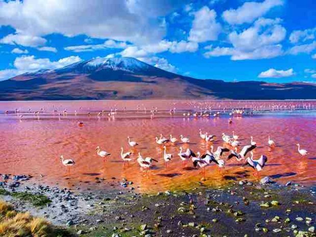 Laguna Colorada, położona w południowo-zachodniej części płaskowyżu Altiplano na terenie rezerwatu Eduardo Avaroa w Boliwii, słynie nie tylko z czerwono-różowego koloru, ale także z pierzastych mieszkańców. Laguna Kolorado jest domem dla ponad dwustu gatunków ptaków wędrownych. Wśród nich są takie rzadkie gatunki jak flaming krótkodzioby, a także flamingi andyjskie i chilijskie. Wszystko dlatego, że bakterie odżywcze, które znajdują się w dolnej warstwie laguny, są dla tych ptaków prawdziwym smakołykiem.