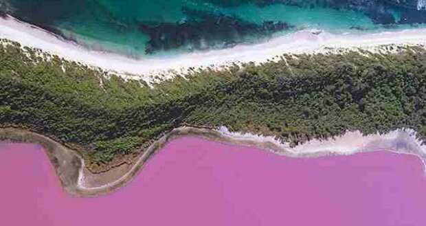 Jezioro Hillier, położone na wyspie Middle należącej do Archipelagu Recherche w południowo-zachodniej Australii, jest jednym z najbardziej mistycznych jezior na świecie. Wszystko dlatego, że naukowcy przez kilka lat nie mogli zrozumieć, dlaczego to jezioro ma taki jaskrawy kolor. Tak było do 2016 roku – wtedy naukowcy odkryli, że różowy kolor jeziora jest wynikiem wysokiego zasolenia połączonego z obecnością Dunaliella salina.