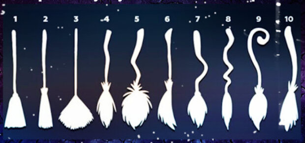 Spójrz na zdjęcie poniżej. Zamieszczono na nim 10 mioteł. Wybierz miotłę, która Ci najbardziej się podoba I jest najbardziej kojarzona z twoją osobowoscią.