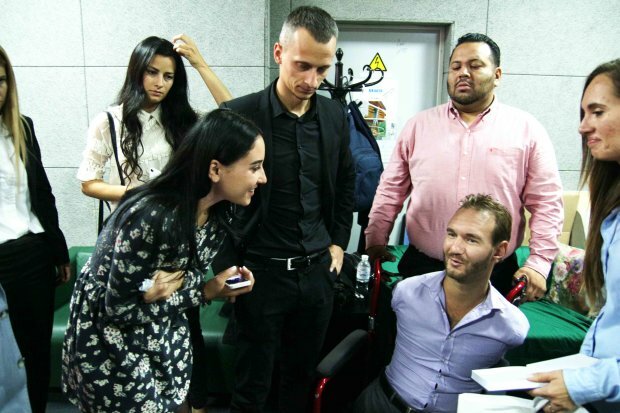 Wiele osób wie, że Nick Vujicic aktywnie walczy o prawa osób niepełnosprawnych i zachęca społeczeństwo do zjednoczenia, aby pomóc tym, którzy są słabsi. Powiedział, że był mile zaskoczony, że Ukraina przeprowadza obecnie reformę, która pozwoli dzieciom o specjalnych potrzebach uczyć się w zwykłych szkołach bez żadnych ograniczeń.