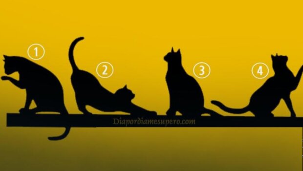 Na poniższym obrazku widzisz cztery koty, które jedynie różnią się pozycją, którą przybrały. Musisz wybrać jednego z nich i ważne, abyś zrobiła to bez większego analizowania czy zastanawiania się, ma być to Twój spontaniczny wybór.