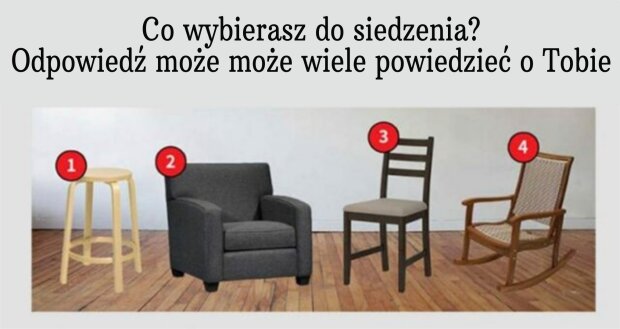 Ten test jest bardzo prosty. Na zdjęciu są umieszczone 4 różne rodzaje krzeseł. Wyobraź sobie, że wchodzisz do nieznanego dla ciebie pomieszczenia, w którym będziesz musiał chwilę poczekać. Są tam 4 różne krzesła. Na którym usiądziesz? Wybierz tylko jedno z nich.