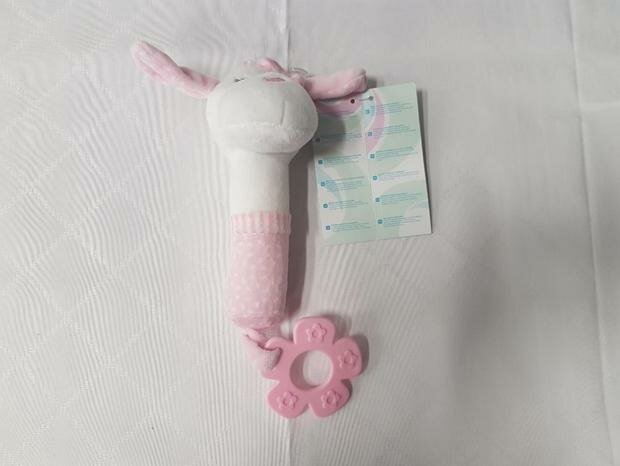 Maskotki/Przytulanki z różowym gryzakiem. Powodem wycofania są niekomfortowe odczucia organoleptyczne w postaci gorzkiego posmaku.
