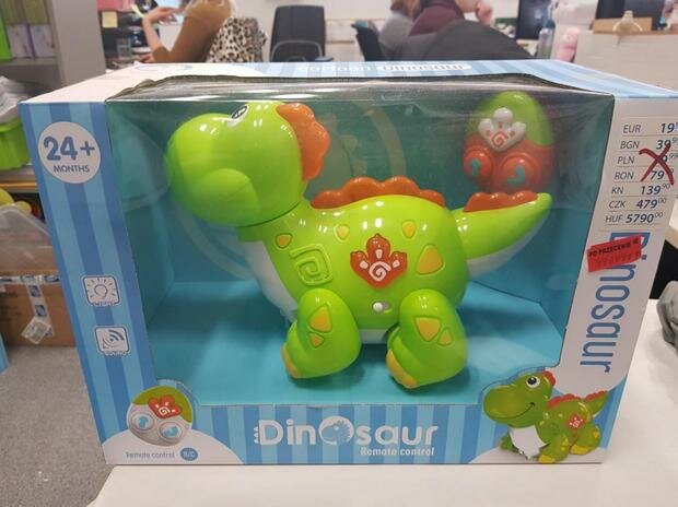 Dinozaur zdalnie sterowany. Powodem wycofania stało możliwe nagrzewanie się komory bateryjnej zabawki.