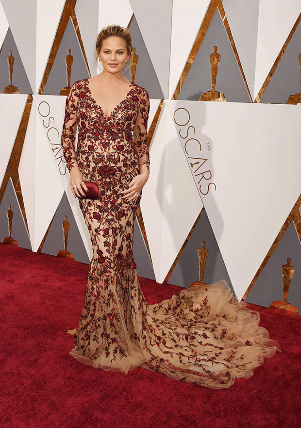 Żona muzyka i aktora Johna Legenda doskonale zniosła ceremonię pomimo nie do końca wygodnego, ale tak spektakularnego kroju sukni wybranej w 2016 roku przez Marchesę.